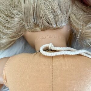 . She has a soft cotton body, and her movable head and limbs are made of smooth vinyl.