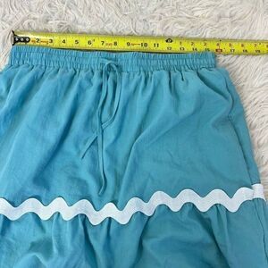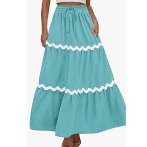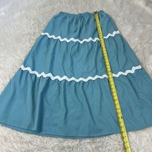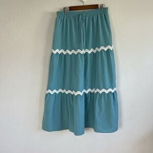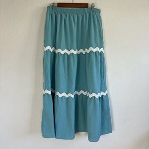 KIRUNDO Blue & White Tiered Elastic Waistband Bohemian Peasant Maxi Skirt Large