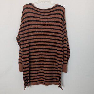KIRUNDO Brown/Black Stripe Long Sleeve Soft Knit Pullover Sweater Dress; Size L