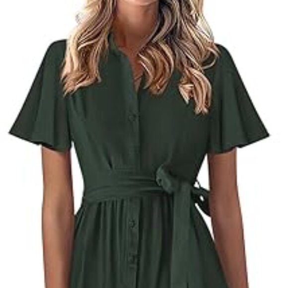 KIRUNDO Button Down Shirt Dress Maxi Flutter Shoulder