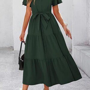 Flutter Short Sleeve Flowy Tiered Beach Sun Dress- on amazon for more