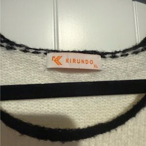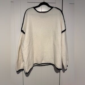 KIRUNDO Oversized Sweater XL White Black Contrast Stitch Knit Long Pullover