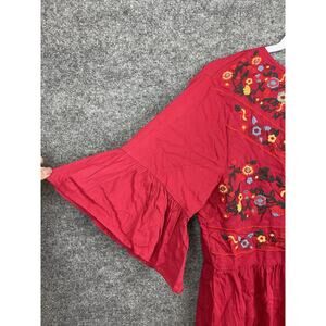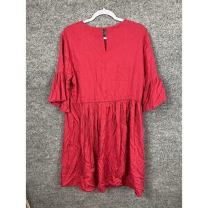 Cute Spring Dresses Casual Bell Sleeve Flowy Tunic Shift Dress, Red, Large