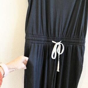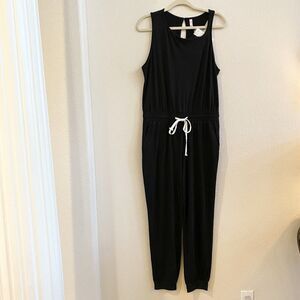 KIRUNDO Womens Summer Cutout Solid Sleeveless Jumpsuit Crewneck Drawstring L