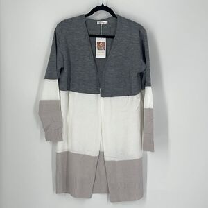 KIRUNDO Women’s Open Front Cardigan Striped Color Block Long Sleeve Sweater