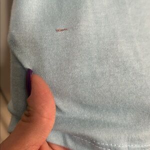 • Light blue body with white ¾-length sleeves