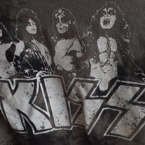 This is a KISS band shirt that is a crop top. It's a tie-dyed light black and tan color. Size MEDIUM