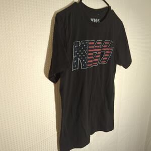 KISS Band T-Shirt 2XL Black USA Flag Logo Graphic Tee Men’s Rock Tour Style