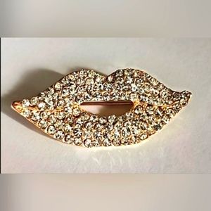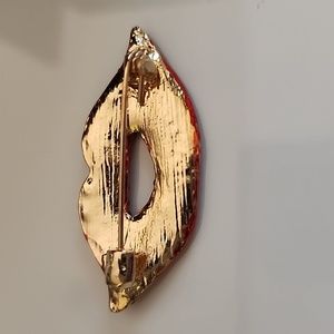 Make a dramatic entrance with this stunning, romantic kiss brooch, made of metal and covered in simulated rubies.