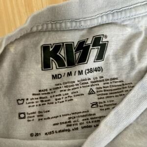 KISS Cartoon Graphic Light Gray Intentional White Splotches Band Tee Size M