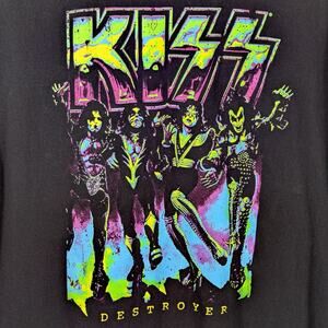 KISS Destroyer T-Shirt Men’s 2XL Black Neon Graphic Rock Band Tee Classic Album