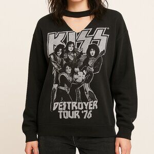 Design: Black pullover with “KISS Destroyer Tour ’76” band graphic printed front and center