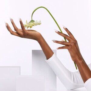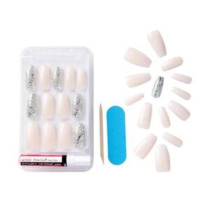 * Off-white & glittery silver fashion nails are long length & coffin shaped