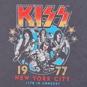 KISS Grey Multicolored Graphic Sleeveless Crew Neck Oversized Relaxed Fit Band Music Tee Tank Top Size Small Sz S 1977 New York City Live in Concert printed image Measurements (also pictured): Length is about 27" Pit to pit is about 20.5" 60% cotton / 40% polyester #kiss #tees #tanks #music #band