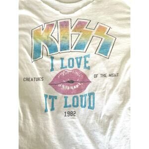 KISS I Love It Loud 1982 Cut Neck Band Tee White Sz M
