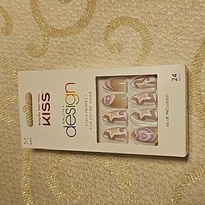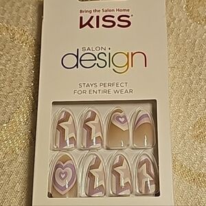 KISS Salon Design Collection 'All 4 Me' in purple and white medium length, almond shaped. New in box.