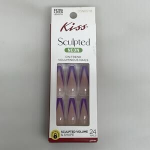 KISS Sculpted Neon Nails Extra Long 24 Ct Purple Tips New DSN05Y8