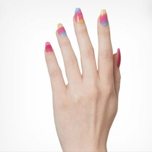 2) The Motto - Kiss Vibrant multicolor coffin press on medium length nails.
