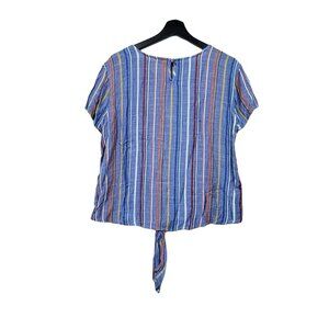 K.I.T Striped Top Womens Large Chambray Multicolor Tie Front Blouse Boho Beachy