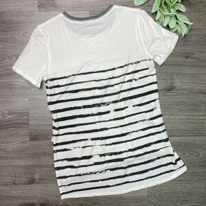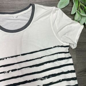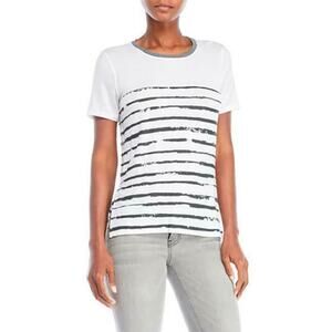 KIT and ACE | sz 2 Women's White/Black Stripe Crew Neck Boyfriend Fit Court Tee