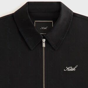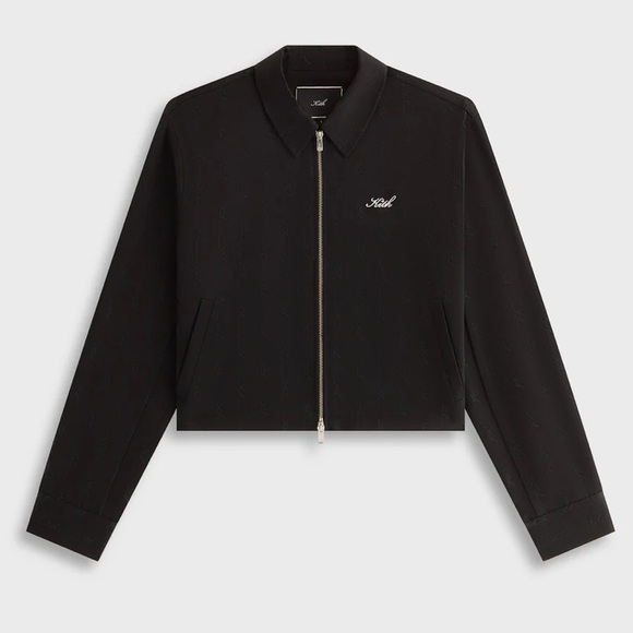 The Corwin Script Faille Jacket is crafted of jacquard faille tailoring fabric, featuring all-over Kith Monogram artwork, a two-way zip-front closure with Kith hardware, welt pockets, and a collared neckline. It is complete with Kith embroidery.