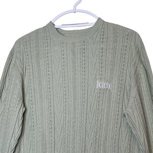 Excellent mint condition used 2 times Size M Light green color limited edition color Embroidered KITH logo comfort, featuring a soft, premium cotton blend for a cozy, relaxed fit. vintage-inspired design make it versatile for any occasion, from casual outings to laid-back evenings. Ribbed cuffs, collar, and hem add a refined touch, ensuring this sweater becomes a staple in your collection. Enhance your style effortlessly with KITH.