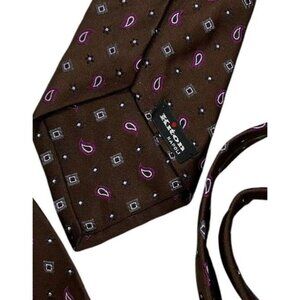 KITON 7fold 100% Silk Necktie LUXURY Brown Geometric Paisley Floral W:3.6" EUC