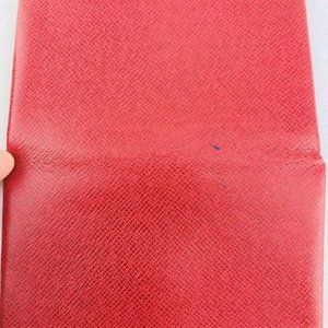 This item has never been used, exactly as shown in the photographs. Beautiful red leather envelope style snapshut business card holder. It can also be used to hold credit cards and cash. Measurements are in the posting, small black mark at the crease as shown in the photographs, this has never been used