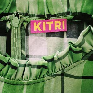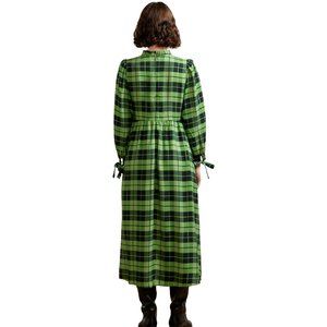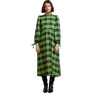 KITRI Elsa Frill Neck Green Check Midi Dress Size 2