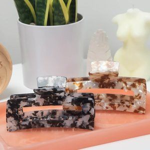 KITSCH Eco-Friendly Jumbo Open Square Claw Clip - Brown & White
