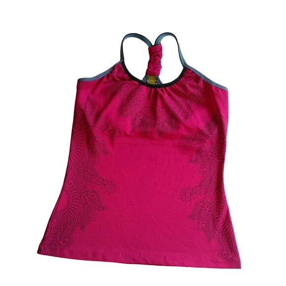 KIWI KATE, SIZE SMALL, FUSHIA YOGA TANK TOP WITH GRAY TRIM. BEAUTIFUL DESIGN. IN GREAT CONDITION. SEE PHOTOS FOR MEASUREMENT AND FABRIC DETAILS.