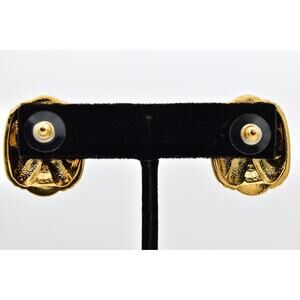 KJL Avon Cabochon Earrings Green Gray Enamel Gold Tone Stud Pierced Signed 9E