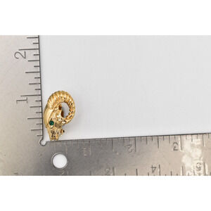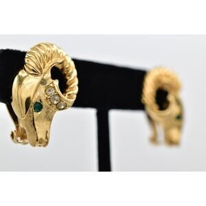 KJL Avon Ram Clip On Earrings Green Rhinestone Crystal Gold Tone Signed 1980s 9I