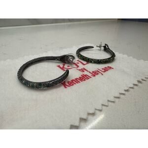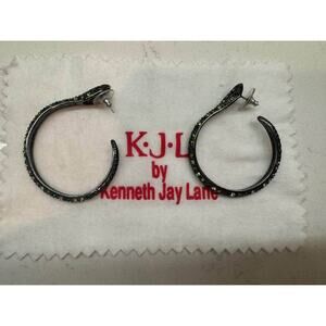 KJL By Kenneth Jay Lane Vintage Green Snake Rhinestone 1.75” Hoop Earrings