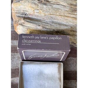 These vintage Kenneth Jay Lane Papillon clip-on earrings are a timeless addition to accessory collections. Featuring a delicate pink and white enamel design accented with rhinestones, they exude sophistication. Designed for comfort and elegance, they are perfect for those who appreciate vintage-inspired jewelry. Presented in the original branded box, they make a charming collectible.