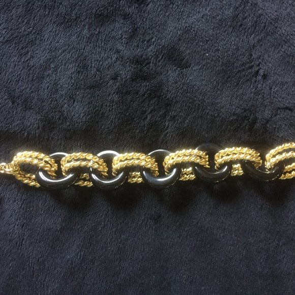 KJL Kenneth Jay Lane Black & Double Gold Tone Tope Link Bracelet/NEW/NEVER WORN!