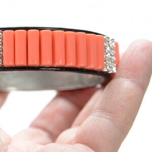 KJL Kenneth Jay Lane Black Enamel Crystal & Coral Slip-On Bangle Bracelet