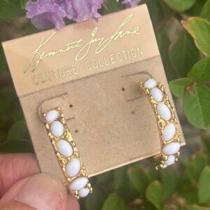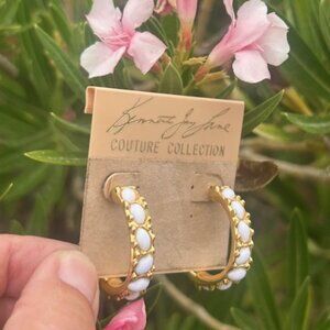 KJL Kenneth Jay Lane Couture Collection Gold Hoop White Stone EARRINGS