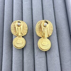 Vintage KJL Kenneth Jay Lane Earrings Green Imitation Pearl Cabochon Clip On Gold Tone