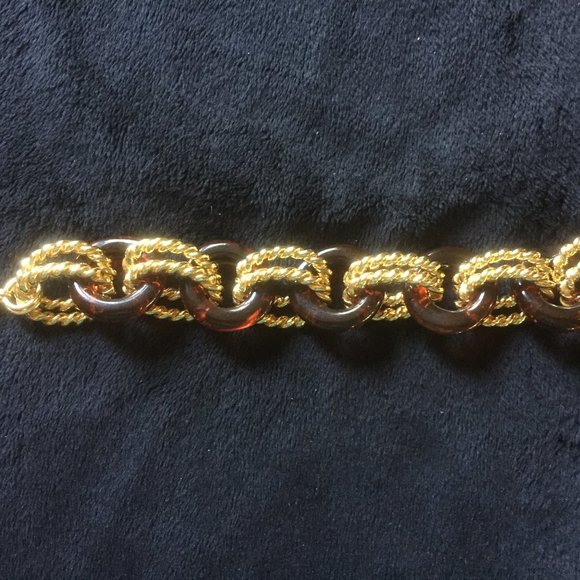 KJL Kenneth Jay Lane Tortoise & Double Gold Tone Rope Link Bracelet/NEW!