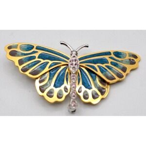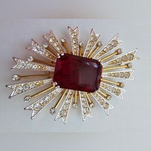 KJL Kenneth Jay Lane Vintage Red White Blue Rhinestone Pendant Brooch Pin