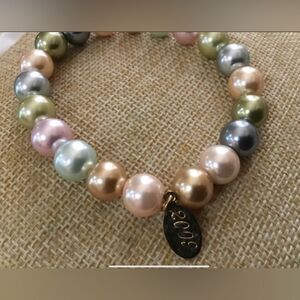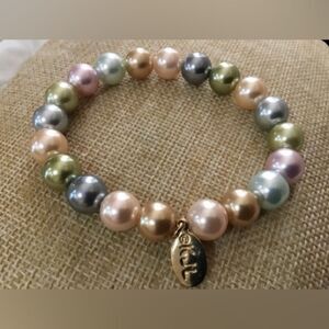 KJL *Kenneth Jay Lane* Multi Color Pastel Faux Pearl Stretch Bracelet EUC