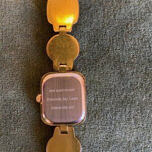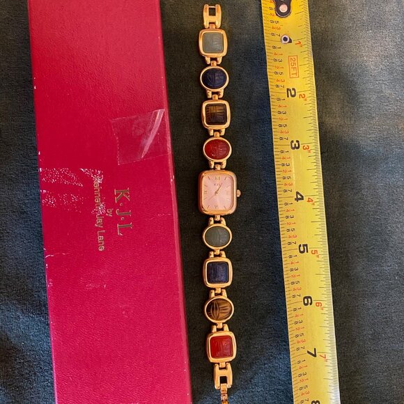 Excellent condition scarab watch in its original box from Kenneth J Lane. It is a very attractive and smart watch that can be worn both for dressy and casual wear. You will not be disappointed with this purchase, especially if you like scarabs. This watch as all my other jewelry needs to be worn and not kept in their original boxes in a jewelry cabinet.