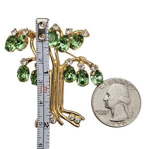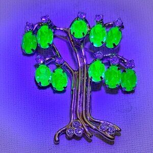KJL Tree Of Life Green Uranium Glass Rhinestone Dangle Brooch Pin Signed, J104