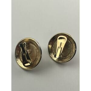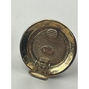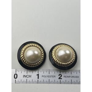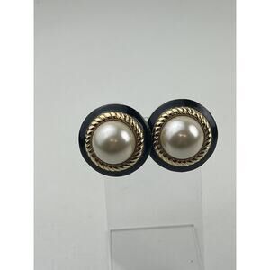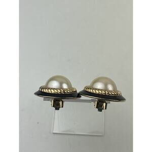KJL Vintage Faux Pearl Clip On Earrings Round Rope Black Enamel Gold Tone