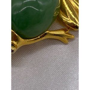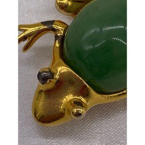 KJL signed Frog Brooch Green Stone iin Metal Gold Plate Mount Good Condition
