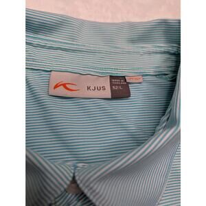 KJUS Mens Golf Polo Shirt 52/Large Blue White Stripe Rose Performance UPF 50+