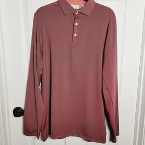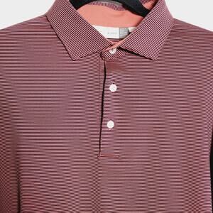 Style: Men Soren Stripe Polo (long sleeve) in a burgundy/red and navy micro-stripe pattern