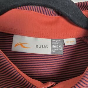 KJUS Polo Shirt Mens 2XL Red Navy Soren Comfort Stripe Long Sleeve UPF 50+ Golf