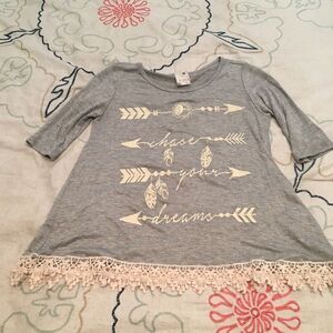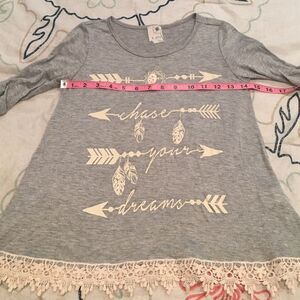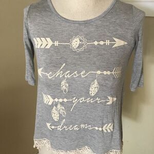 Adorable top with beautiful lace trim, in perfect condition. “Chase Your Dreams” graphic.